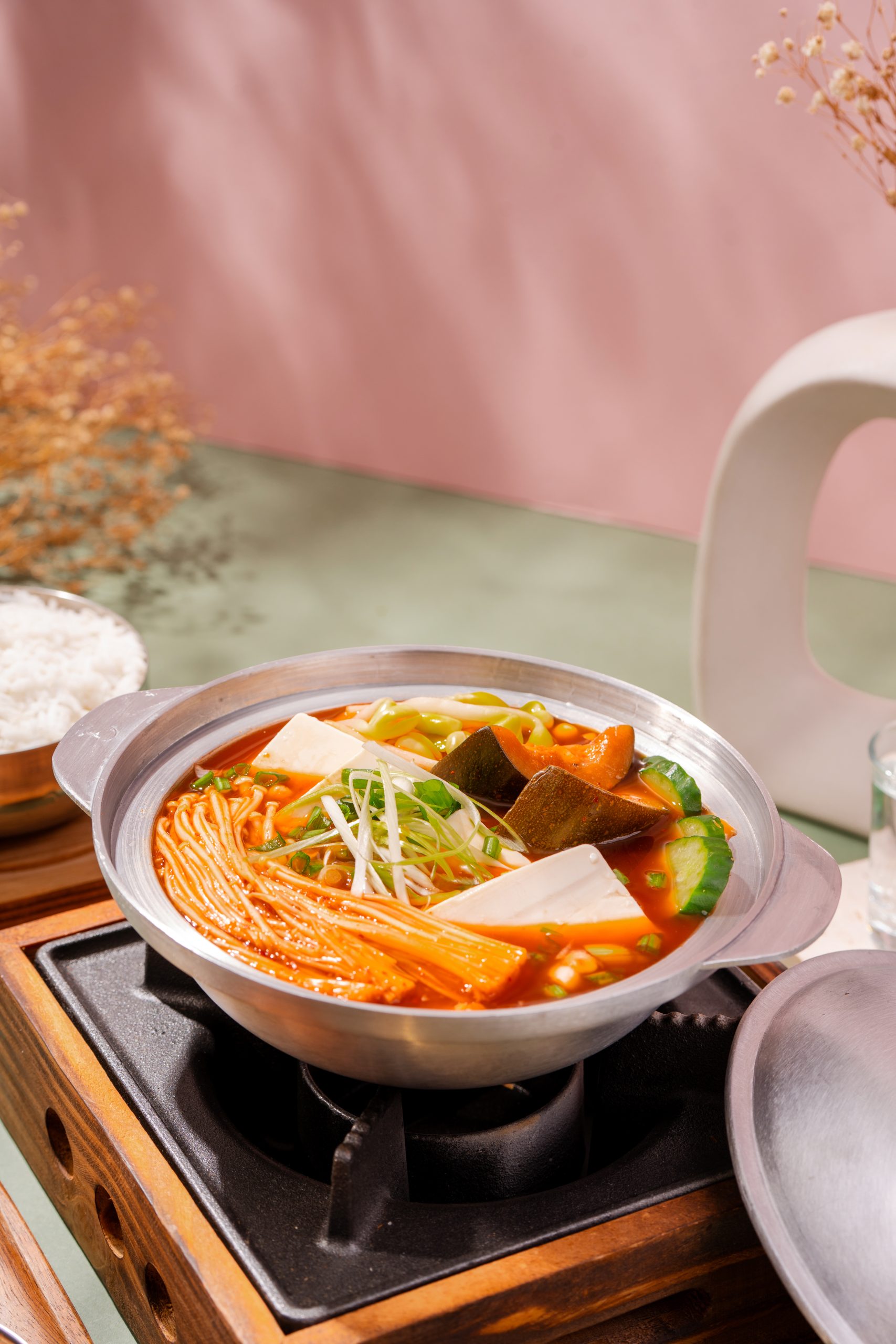 A warming Korean stew with tender chicken and a spicy, savoury broth — perfect for a satisfying and comforting meal.